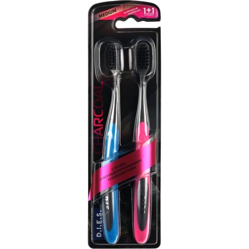 Зубная щетка D.I.E.S. Charcoal средняя жесткость, 1+1шт, 2шт в магазинах Лента