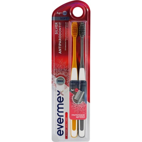 Зубная щетка EVERMEX Antiparodontit silver мягкая, 2шт в магазинах Лента