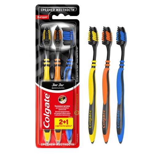 Зубная щетка средней жесткости Colgate Зиг Заг Древесный уголь, 2+1 шт (kastd) в магазинах Ашан